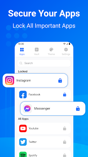 With App Lock, you can quickly secure your apps and data by locking them using your fingerprint. This feature provides an additional layer of security and ensures that only authorized users can access your apps. App Lock also provides PIN and pattern lock options for users who prefer these traditional lock methods.