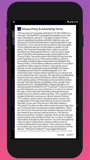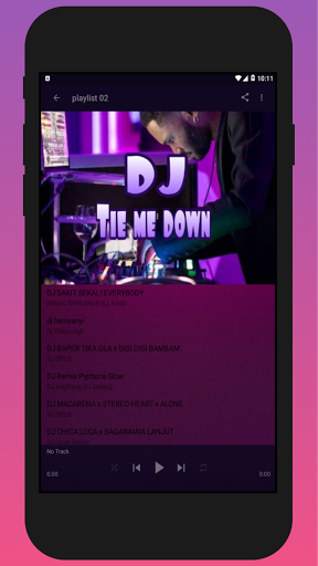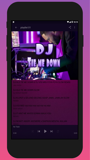 Aplikasi ini merupakan aplikasi musik dj yang diciptakan untuk menemani. aplikasi dj ini berisikan lagu lagu yang masih hangat atau masih sering didengar di tahun ini dan juga aplikasi ini dapat digunakan sebagai sarana untuk mendengarkan lagu dj Terbaik tahun ini.aplikasi ini juga berisikan musik musik dj lain selain dj tie me down.