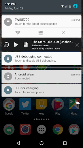 Notification- an easy way to tell if you are connected the strongest network, the second one, or none of them. Turn wifi on and off with one touch from the notification's actions.