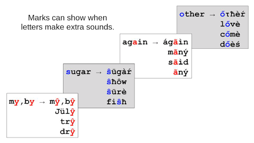 5) Common patterns like 'sh', 'ch', 'ea', etc can be left unmarked