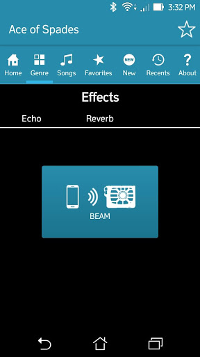 Simply select a preset, hold your Android device next to Perform-VK's room-sense microphone, then press "Beam".