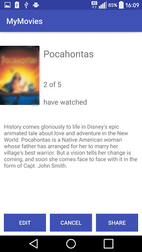 App to manage your own movies library. Add to your list movies you want to watch later and movies you already watched. Rate the movies.