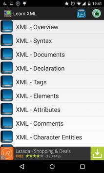 This application will teach you basics of XML. The application is divided into sections such as XML Basics, Advanced XML and XML tools. Each of these sections contain related topics with simple and useful examples.