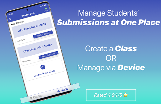 👉 Manage all (no-limit) submissions and students from Teach Easy app itself. Create a class and invite your students.