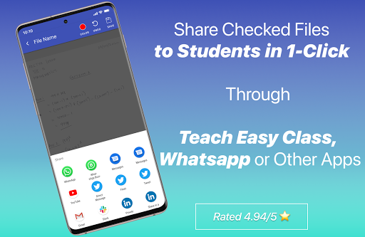 Once you’re done checking the whole assignment/answer sheet, click the save button on the right top. The checked copy will be saved as a new file and you will get the option to share it using WhatsApp or other apps.