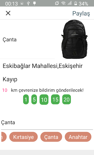 Zamandan ve Paradan Tasarruf edin: Yeni bir tane için ödeme yapmak yerine kayıp eşyanızı bulun.Harita üzerinden takip edebileceğiniz, konum ayarlarında 5 km, 10 km, 15 km veya 20 km seçeneklerine tıklayarak konumunuza yakın olan kayıp eşyalar hakkında bildirim alın ve kayıp eşyanızı kolayca bulun.Ayrıca uygulamamız tamamen ücretsizdir. Sadece uygulamayı telefonuzu kurun ve sürekli telefonunuzda saklayın. Ne zaman bir şey kaybedeceğiniz ya da bir şey bulacağınız belli olmaz.