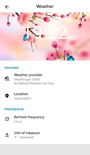 • Easy weather location selection: Use the device’s sensors to determine the location, or set it up manually.
