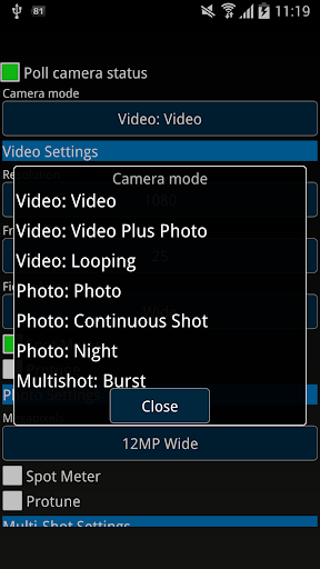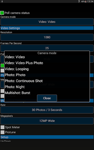 - Control all important camera settings (including resolution, frame rate, camera mode, Protune, ...).