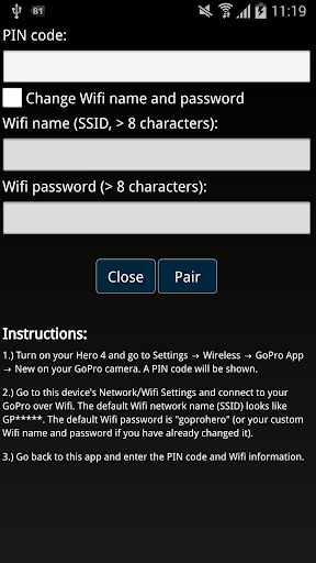 - Support for GoPro Hero 4/5 Wifi pairing.