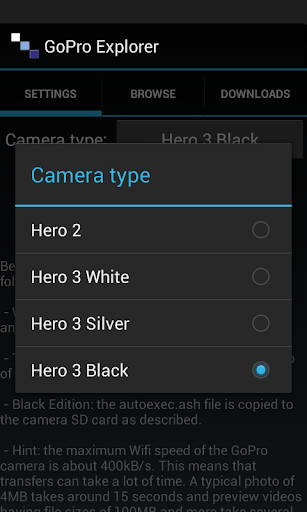 Use GoPro Explorer to browse and download videos and photos recorded with GoPro Hero 2 and 3 (White/Silver and Black Edition are supported) cameras directly over Wifi.