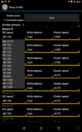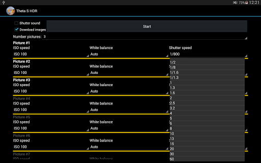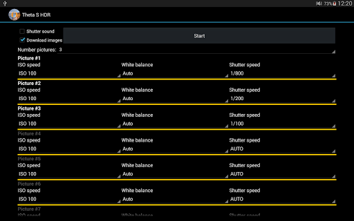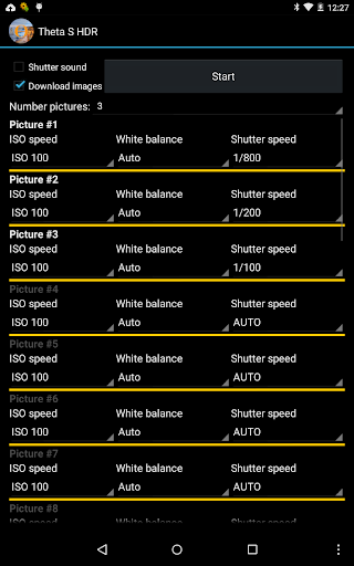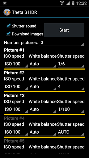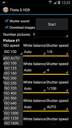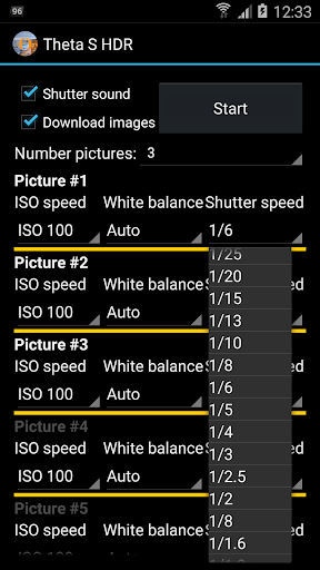 The HDR for Ricoh Theta S cameras app captures exposure series using the Ricoh Theta S 360 degree camera.