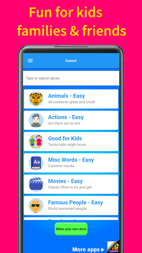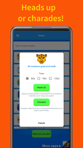 - Charades Mode - keep the word to yourself. Other players must guess the word you describe, mime and act.
