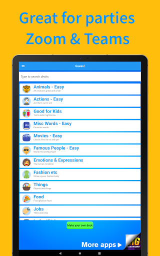 You can also create your own decks of words.