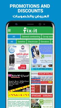 WWW.FIXIT.COM.KW هو سوق لمقدمي الخدمات ، يوفر القدرة لطلب عدد متزايد من الخدمات الى منزلك ، تم تصنف عدد كبير من الخدمات الرئيسية الى قسمين من مقدمي الخدمات, الشركات أو الأفراد. بعد تجميل البرنامج، ستكون قادرا على:
