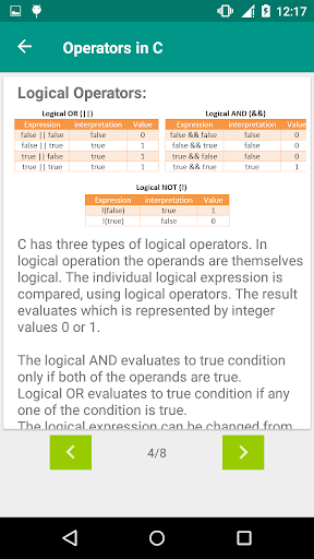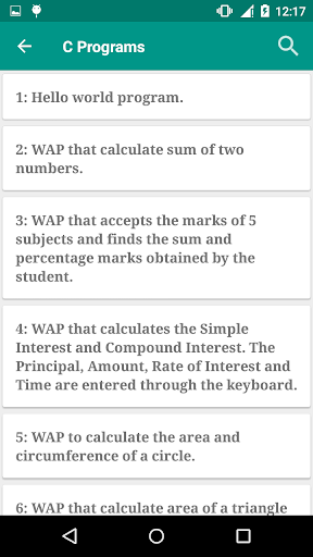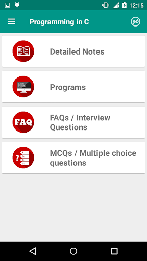 • Programming in C app is a complete package to study C language on the go and Helps you improve Logical thinking of various problems related to Programming.
