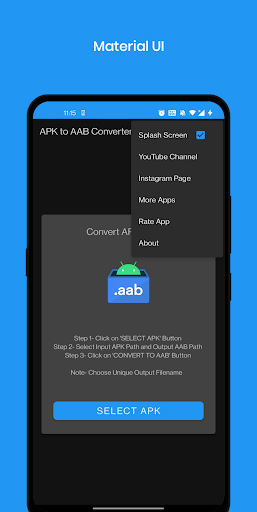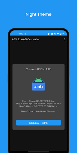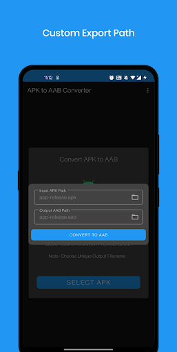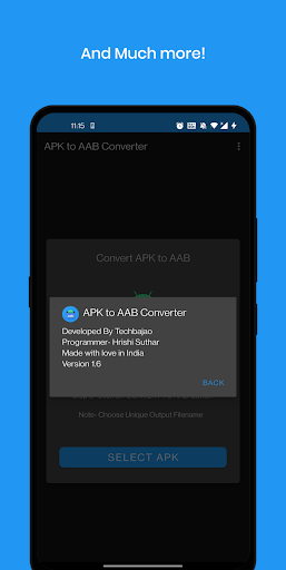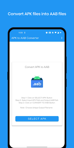 Features- - Convert APK files into AAB files! - Convert ApkSet (.apks) files into AAB files! - Set advanced configurations while generating aab - Sign with custom keys. - Night Theme! - Custom Export Path! - Material UI! And Much More!