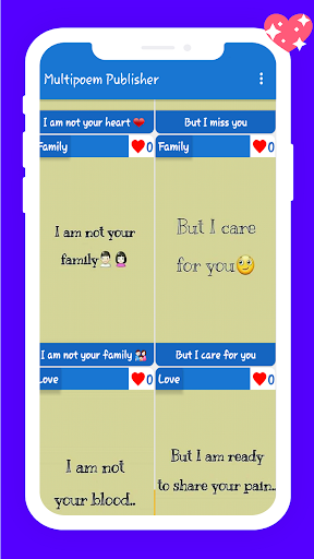 ❤ Multi poem publisher is a completely new experience of sharing your thoughts. It is a