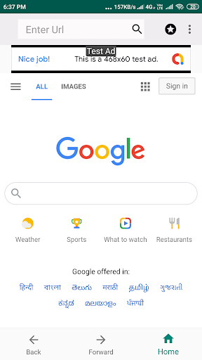 Swift Browser Lite is a fast and light weight browser with file uploading, file downloading, history, bookmarks, desktop mode, full screen video support.