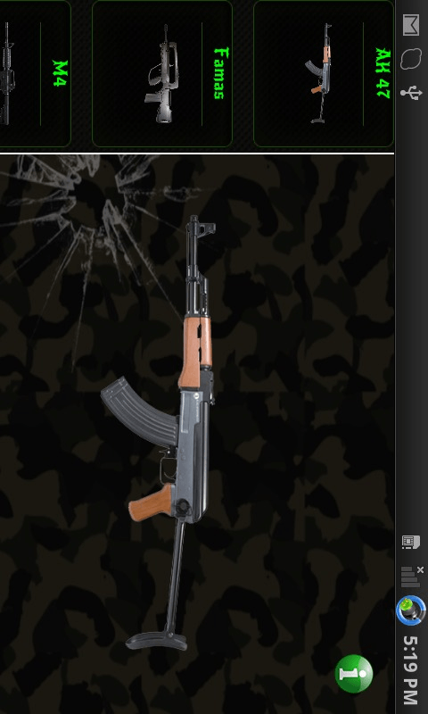 If you are a Gun lover ,Then this is just the right app for you. Choose from the coolest and vast variety of automatic & semi-automatic weapon with just a single tap of your finger and start playing around with it. Six major categories of guns are available and under each category 5 different sorts of guns can be found. Features include: - Cool Graphics Interface - Wide variety of weapons - Nice Fire Sounds for best Audio experience - Weapon Information is available to increase your knowledge How to Use: - Touch the screen to fire - Click on the button for information about the gun. Please rate our app 5 stars if you like it and don’t forget to give your reviews & feedback to appreciate our efforts. For suggestions or reporting bugs & complaints, kindly email us so that we make sure it is taken care of. Happy Shooting, folks! Keywords : Guns, sounds, guns info, snapper gun,pistol,Shoot, fire, weapons, fire sound