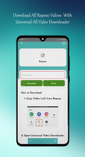 Universal Video Downloader is an Android All Social Media Status Videos and pictures Downloader App. Download WhatsApp Status, TikTok Videos, Facebook Videos, Likee, SnackVideo, ShareChat, Roposo, Josh, Chingari, Mitron Status Etc. With Universal Video Downloader!