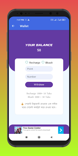Available withdrawal methods are: bKash, nagad, rocket. The minimum withdrawal amount is $1. You will receive the funds within 5-7 business days.