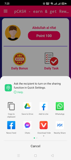 This is a Bangladeshi earning cash app which rewards its user for completing several tasks and use the app. This app never encourages user to click on ad or install app after clicking. We never give any coin for clicking on ad. We only reward for completing some task.