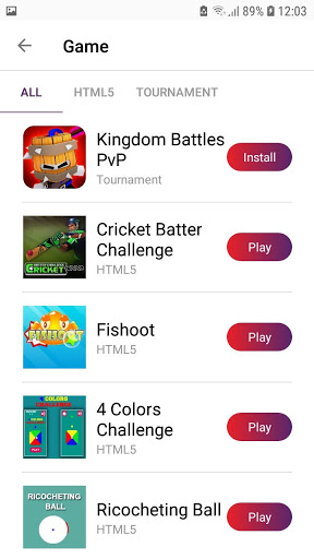 - A wide varieties of mobile games and HTML5 games;
