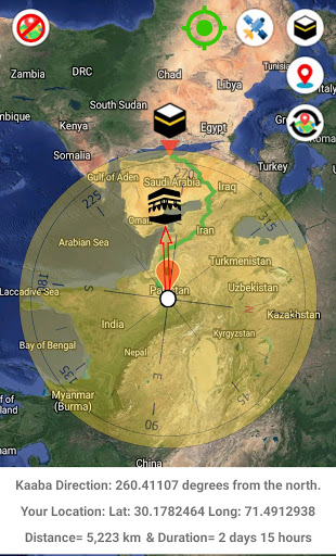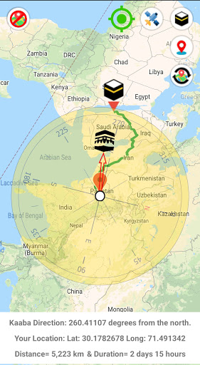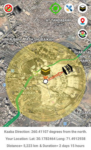 • Find Qibla location anytime. This location is fixed as the direction of the Kaaba in Mecca.