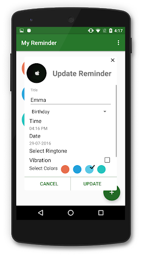 Never forget any important event. My Reminder helps you mark special events and can show you notifications when you mark them. Currently we only support birthday, anniversary, meetings & other, however we will add support for custom messages in later iterations.