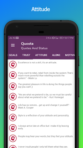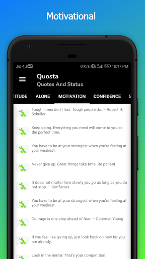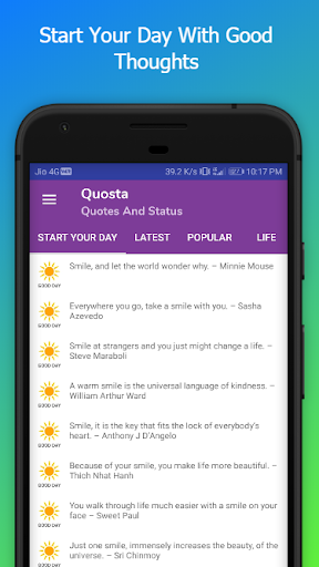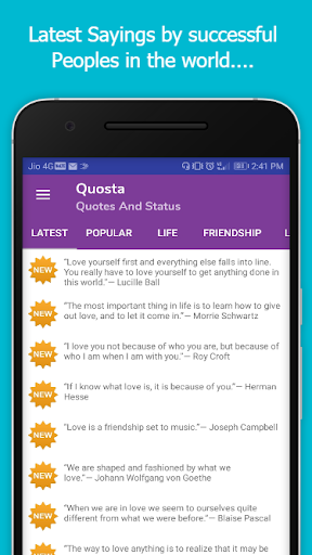 This app contains large collection of quotes and status. You don't need to search on web for the quotes and sayings. Get your favorite quotes and statuses in one app from all over internet. App gives you access to over 1200 quotes and statuses in various 14 categories.