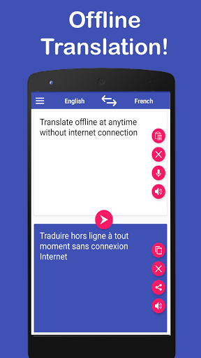 French English Translator Free & Offline translator can translate voice and text from French to English and English to French (Traducteur français anglais). You are able to translate words and even sentences, in just a split second completely offline.