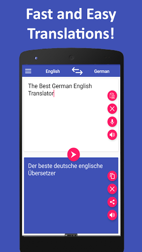 German English Translator Free translator can translate voice and text from German to English and English to German (Deutsch Englisch Übersetzer). You are able to translate words and even sentences, in just a split second.