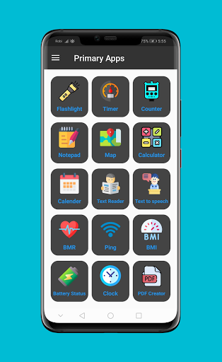Primary Apps is a free all in one app. Primary Apps contains Flashlight, Timer, Counter, Notepad, Map, Calendar, Clock, Text to speech, and Calculator. You can access all these apps in one for free!