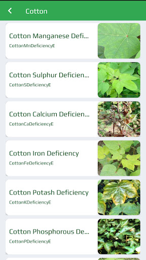 Each article explains the identification of nutrient deficiencies with text, images, and suggested control methods for all the nutrient deficiencies. The farmer can compare the nutrient deficiencies in his crop with the photos given in this app and identify the nutrient deficiencies that are damaging his crop. Here the farmer can get the complete nutrients information required to control these deficiencies.