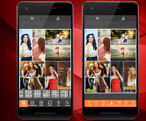with various filtered layouts and photo grids, save them to picture gallery, then share funny