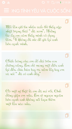 Đọc xong những câu stt tâm trạng về tình yêu ở trên các bạn có hiểu được phần nào nỗi buồn và tâm sự của họ không? Hy vọng đọc xong những câu stt tâm trạng về tình yêu này các bạn ấy có thể vượt qua nỗi buồn về chuyện tình cảm để đứng dậy và bước tiếp. Chuyện gì rồi cũng sẽ qua, trong tình yêu cũng vậy nỗi buồn qua đi niềm vui lại đến. Hãy ùng chúng tôi chia sẻ thật nhiều những câu nói hay về tình yêu và cuộc sống nhé!