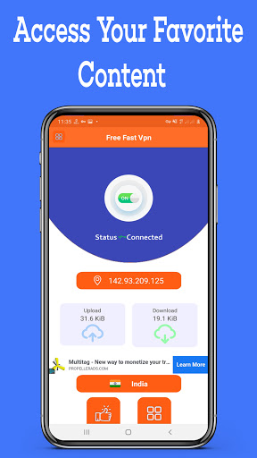 Free Fast Vpn app provides free VPN proxy service. No need to make any configuration, just simply click on one button, you can access the Internet securely and anonymously.