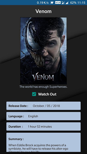 Movie Go is an app for entertainment which notifies you about new movies that release in the theaters around you and helps to get details about movies that are releasing soon and those which have already released.