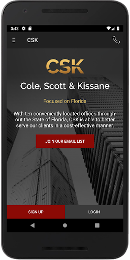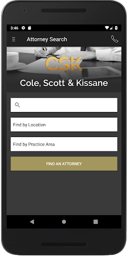 This Android Application is provided by Cole, Scott & Kissane, P.A. for informational purposes only and does not contain legal advice. The transmission or receipt of information contained on this app neither form nor constitute an attorney-client relationship.