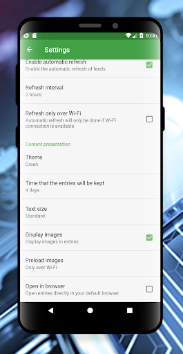 Technology News can be configured to automatically download full article and podcast for offline reading