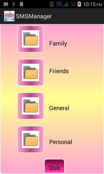 The SMS Organizer (SMSO) application, the ultimate goal is to provided facilities to manage SMS messages with similar to web based email features, with password protection and along with 'Native Android SMS (NASMS) features. To provide user with complete data protection and privacy, SMSOapp configuration forces user to configure password. SMSOsupports to reset and receive system generated password SMS on alternative phone number. To evaluate integrity/valuation addition of SMSOapp, SMSOprovides dynamic option to Enable or Disable NASMS app. On Disable NASMS, SMSOdisable NASMS to stop receiving SMS message. On Enable NASMS, SMSO shall not alter the NASMS features and both applications continue to receive SMS messages. The SMSOcomes with default folders – InBox, Family, Friends, Business and General, to facilitate user to organize SMS message including move, delete, forward, reply etc and keep personal message forever based on your phone memory.