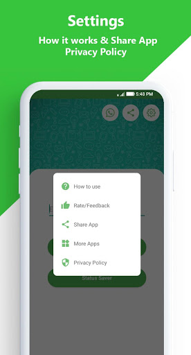 𝐒𝐭𝐚𝐭𝐮𝐬 𝐒𝐚𝐯𝐞𝐫: Status saver is used for downloading and sharing your friends WhatsApp status images or videos. Status Saver is used as free status downloader.