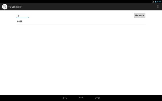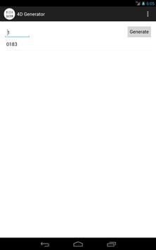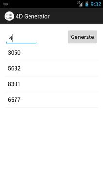 4D Number Generator is the fastest most easiest and efficient method of grabbing your lucky set of 4 numbers! *** Can generate unlimited tickets *** No duplicate feature
