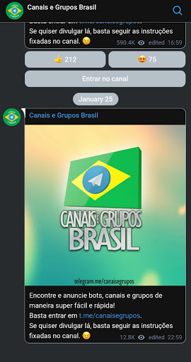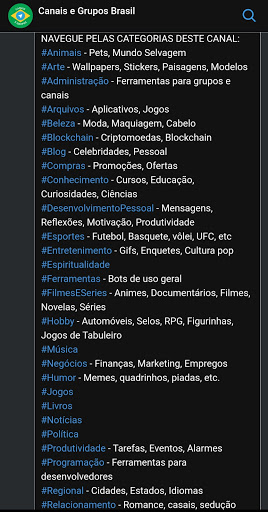 이 앱을 통해 매일 새로운 출판물을 채널 전보에 여러 개의 봇, 채널 및 브라질 그룹을 찾을 수 있습니다.앱을 설치하지 않고 카탈로그에 액세스 할 수도 있습니다. https://t.me/joinchat/m2pru5zp5tnhywr을 입력하십시오.