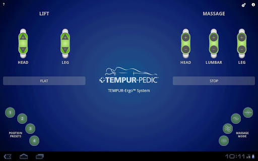 The TEMPUR-Ergo™ Premier Adjustable Base includes virtually unlimited number of ergonomic positions along with soothing massage. With 3 zones (head, foot and lumbar) and 4 program choices (standard, wave, synchronized wave and pulse, you can customize your massage to your preference.