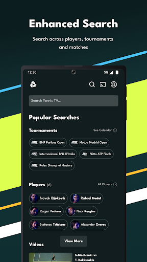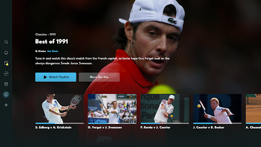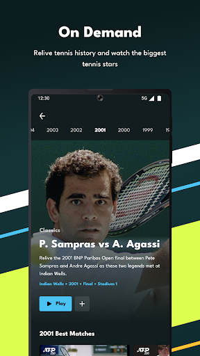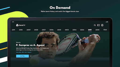 * Watch thousands of replays and classics with the Tennis TV library. Enjoy replays featuring Roger Federer, Rafael Nadal, Novak Djokovic, Andy Murray, Andre Agassi, Pete Sampras and more.