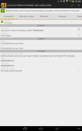Con Ten Move podrá registrar todas las tareas, tiempos, gastos y consumos de materiales vinculados a un proyecto de Ten ERP.