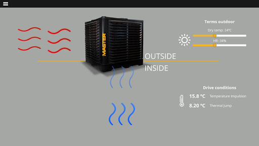 The Master Coolers evaporative cooling application allows simulations and real calculations for air conditioning projects. Tool with which we can know the immense possibilities of energy saving and the advantages that this type of systems bring.