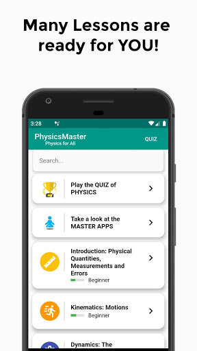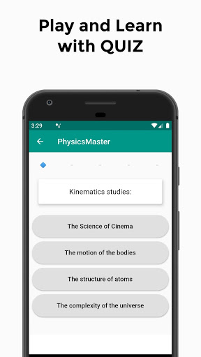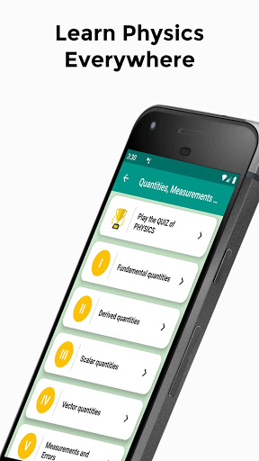 Questions about every topic in the app. Quizzes will help you learn physics while having fun.