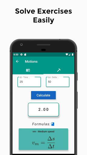 PhysicsMaster Pro allows you to acquire the basics of Physics and solve problems thanks to the CALCULATOR function on the practical pages of the app!